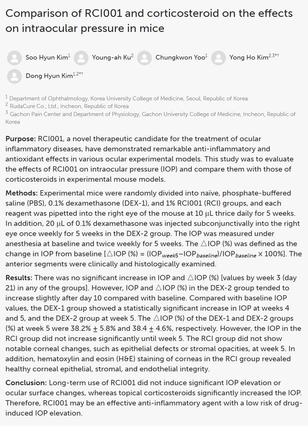 Comparison of RCI001 and corticosteroid on the effects on intraocular pressure in mice